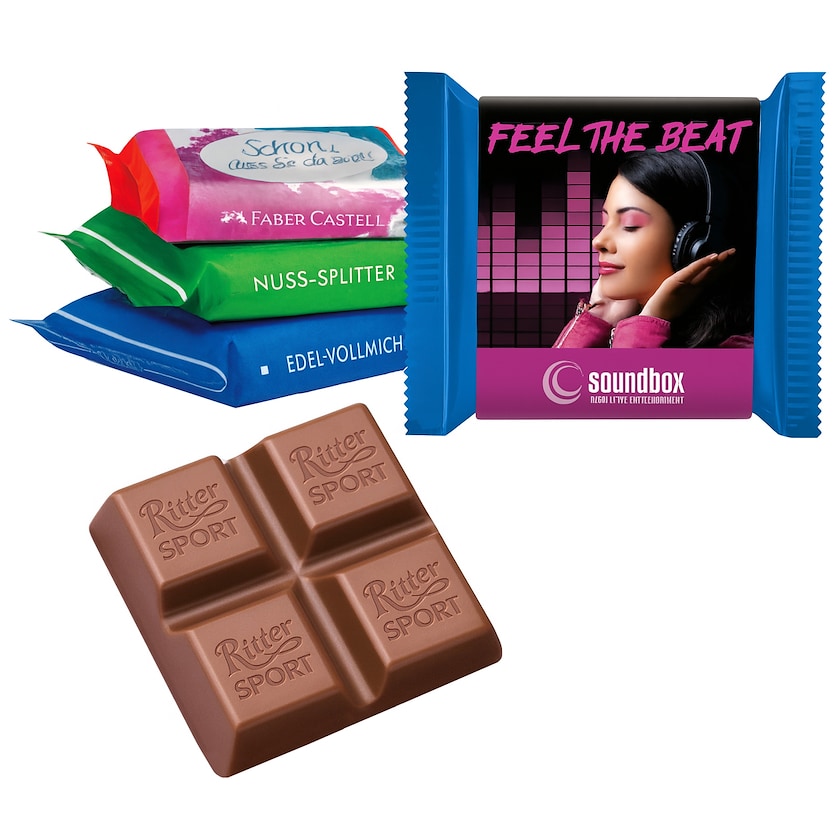 Klassiska Ritter Sport MIni med egen digitaltryckt banderoll.
