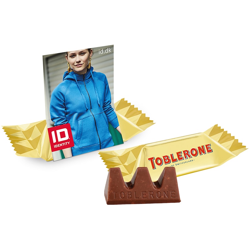 Toblerone Mini med extra stor banderoll. Bandrollen trycks helt efter önskemål.