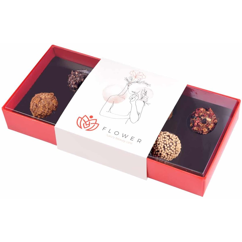 Chokladask med 8 st lyxiga chokladtryfflar. Chokladtryfflarna kommer i blandade smaker såsom cherry, dark orange, calvados och passion fruit. Runt chokladasken placeras en banderoll som trycks helt efter dina önskemål. Du bestämmer även själv trycket på pappasken och dess insida.