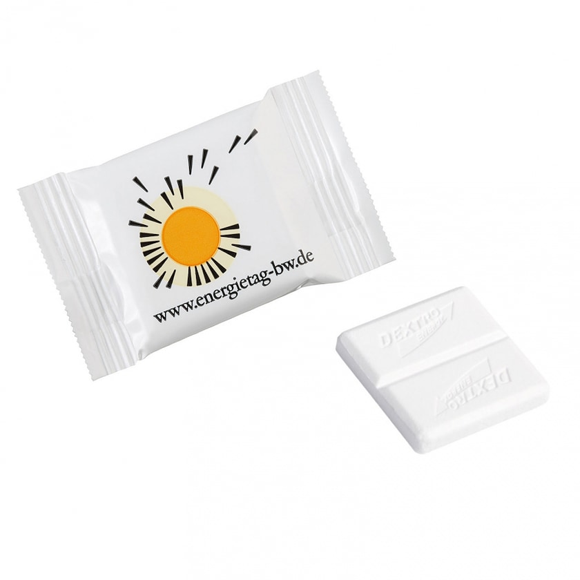 Ett energiknippe! Uppiggande druvsockertablett i flowpack.