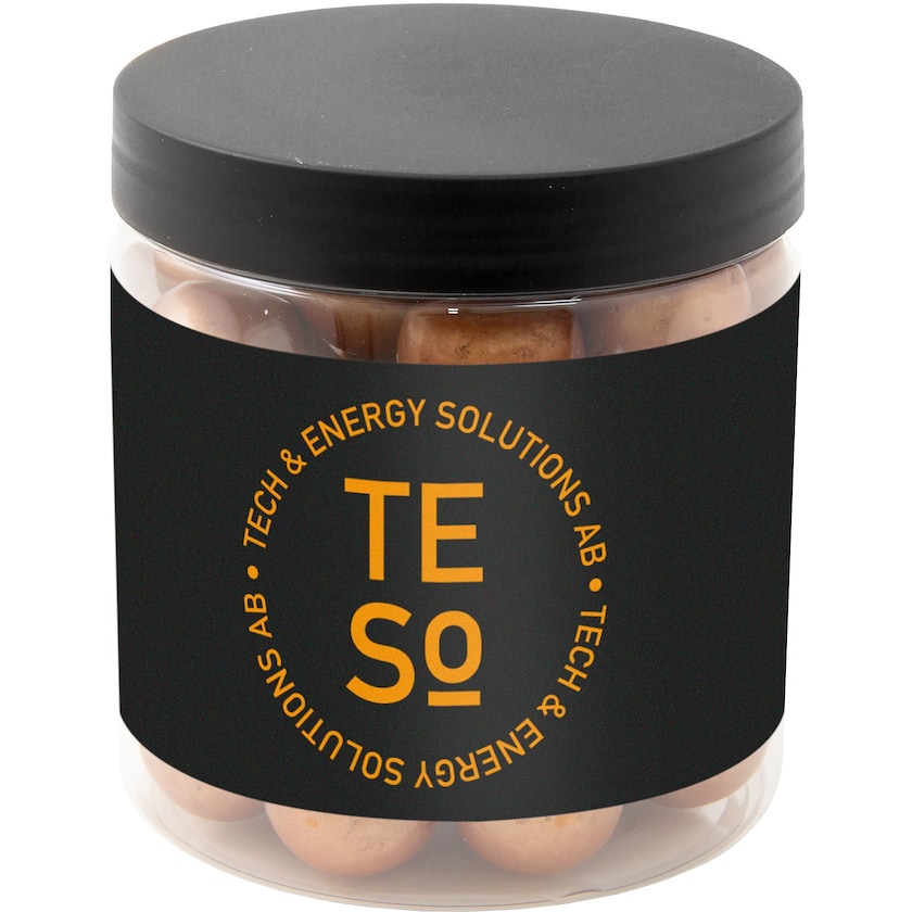 Plastburk fylld med 150 gram underbara lakritskulor. Välj mellan lakrits med brons-, silver- eller gulddragering av choklad. Etiketten trycks efter dina önskemål. En trevlig present till lite viktigare kunder.