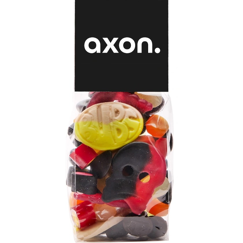 Lyxig godispåse fylld med valfritt godis. Bliss kan fås med ett stort antal olika godistyper. Godispåsen försluts med en pappbanderoll som trycks efter dina önskemål.