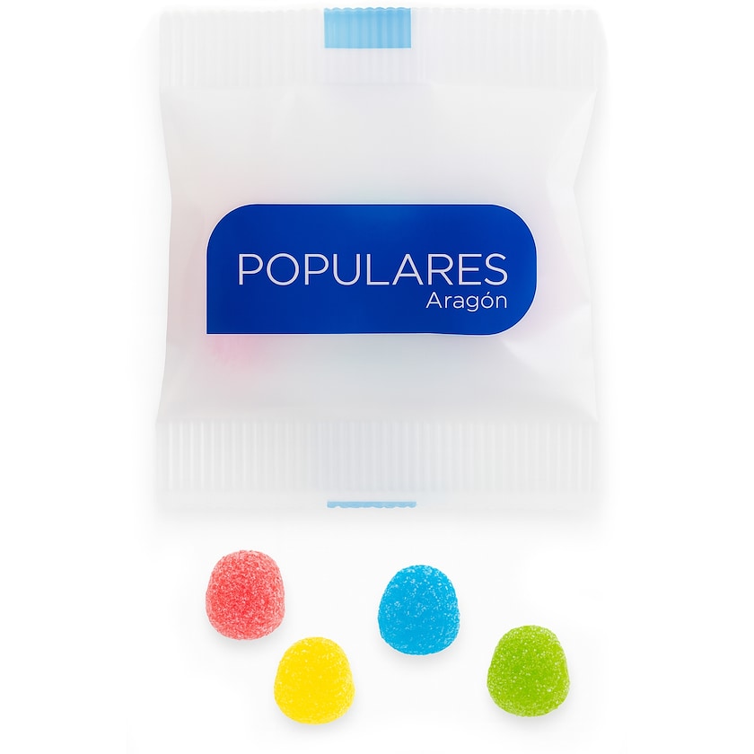 Liten påse med gelégodis i blandade smaker. Påsen trycks helt efter dina önskemål. En trevlig godispåse med gott innehåll.