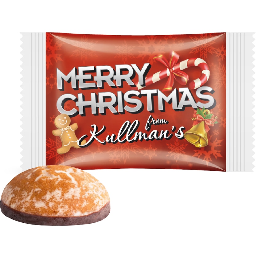 Liten mjuk pepparkaka i förpackning med eget tryck. Pepparkakan kommer från Bahlsen och har tillverkats 100% klimatneutralt. En liten sötsak som sprider härlig julstämning. Ladda ner tryckmallen och designa din egen förpackning.