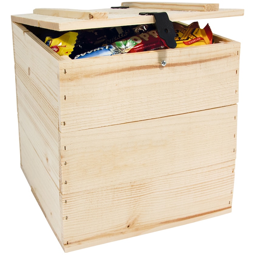 Stor trälåda fylld med 2,5 kg högkvalitativt lösgodis. Innehåller bland annat Bounty, Plopp, Mjölkchoklad och Kexchoklad. En stor trälåda fylld med en massa gott. Som tillval kan digitaltryck fås på ett av våra tre hälsningskort med jultema. Kortet placeras inne i lådan.