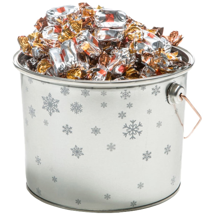 Klassisk målarhink i metall fylld med chokladmix eller Verganis blandade praliner. Hinken har handtag och lock. Priset inkluderar digitaltryckt dekal.