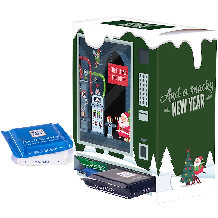 Unik adventskalender med choklad från Ritter Sport. Adventskalendern har inga traditionella luckor utan istället tar du bara en chokladbit varje dag. Tillverkad av FSC-certifierad kartong.