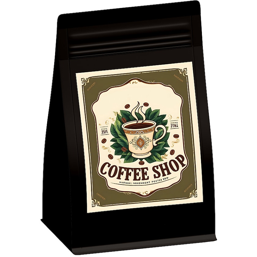 Påse med 70 gram Arabica-kaffe av högsta kvalitet. Du väljer själv mellan malt kaffe och hela rostade kaffebönor samt om du vill ha svart, vit eller naturfärgad påse. Ditt tryck sker på en klisterdekal som fästs på påsens framsida. På baksidan finns en etikett med innehållet.