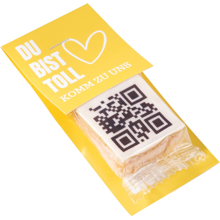 Digitaltryckt kaka som är fäst på ett kort. Finns i flera smaker. Trycket sker med karamellfärg på ett tunt lager socker. Kortet, som har måtten 178 x 55 mm, digitaltrycks helt efter dina önskemål.