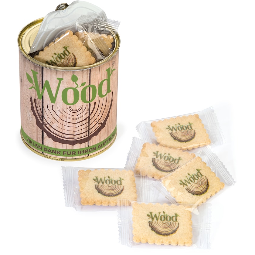24 läckra smörkakor med digitaltryckt burk. Smörkakorna är läckert spröda och är individuellt inslagna. Tryckpriset avser tryck på alla kakorna samt på konservburken. En perfekt gåva till kakälskaren.