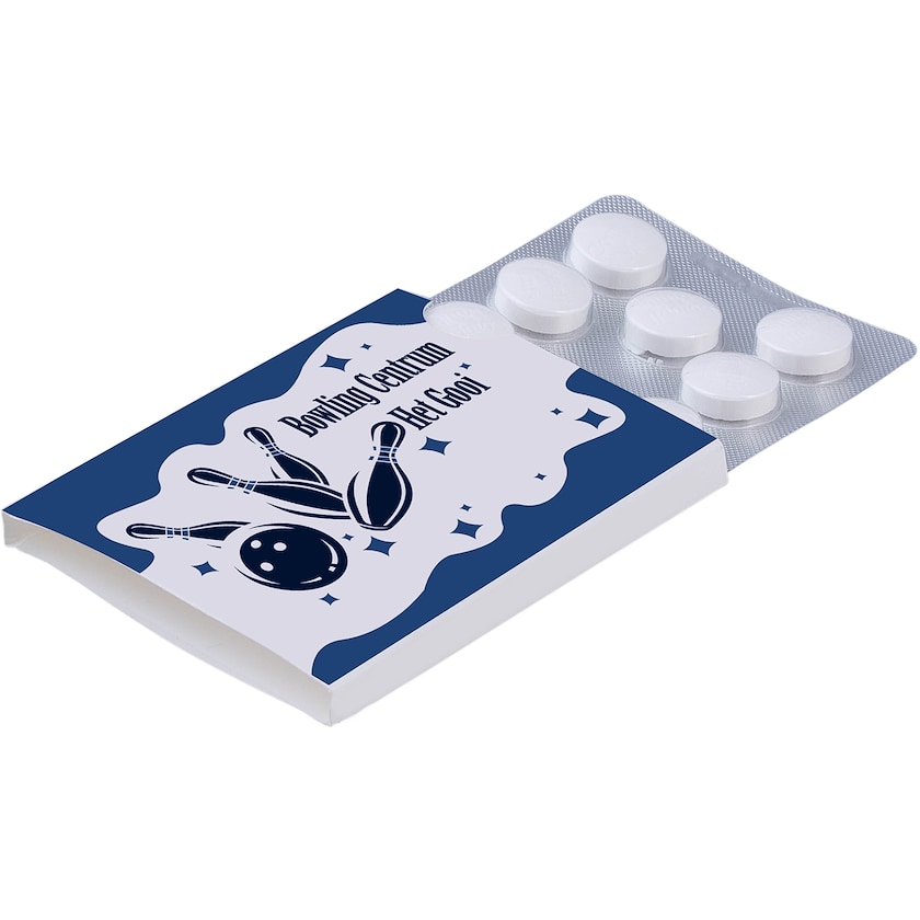 10 st sockerfria minttabletter i blisterförpackning och digitaltryckt pappershölje.