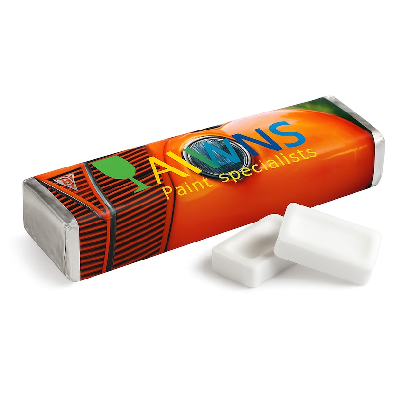 Fantastiskt prisvärda minttabletter i silverfolie. Trycket sker på en pappersbanderoll som löper runt innerförpackningen. Minttabletterna är sockerfria.