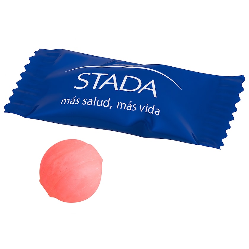 Liten syrlig karamell i flowpack med eget tryck. Karamellerna har mycket lång hållbarhet och finns i flera läckra smaker. Minsta antal per smak är 50 kg.