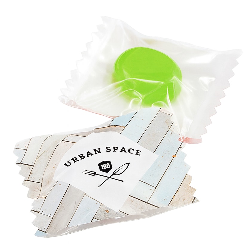 Karameller med tryck som kan köpas från endast 1000 st. Karamellen är ovanligt stor och väger 6,5 gram. Välj mellan smakerna menthol och fruktmix. Hela framsidan trycks efter dina önskemål.