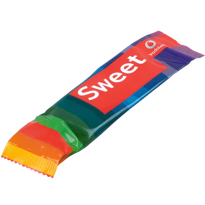 13 grams godisklubba av Fairtrade-certiferat och ekologiskt framställt socker. Godisklubbans färg är framställt av naturliga ingredienser. Hela flowpack-förpackningen trycks efter kundens önskemål. Minsta antalet som måste beställas per smak är 6000 st. En Fairtrade-klubba med gott om plats för reklam!