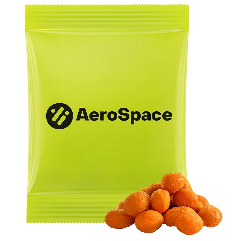 Jordnötter med krispig och salt yta. Ett perfekt snack! Hela förpackningen trycks efter dina önskemål.