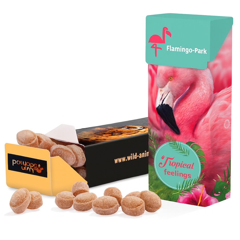 Modern tablettask fylld med 25 gram högkvalitativt godis. Asken digitaltrycks och förses med skyddande cellofan. Du designar fritt hela asken (se tryckmall).