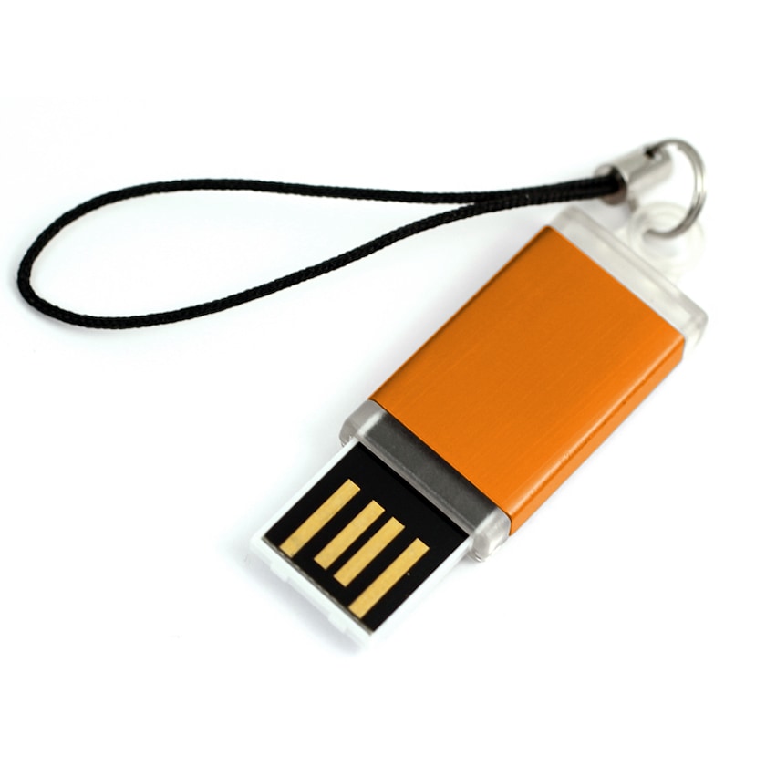 Superlitet USB-minne med skjutfunktion och skal i plast och aluminium.