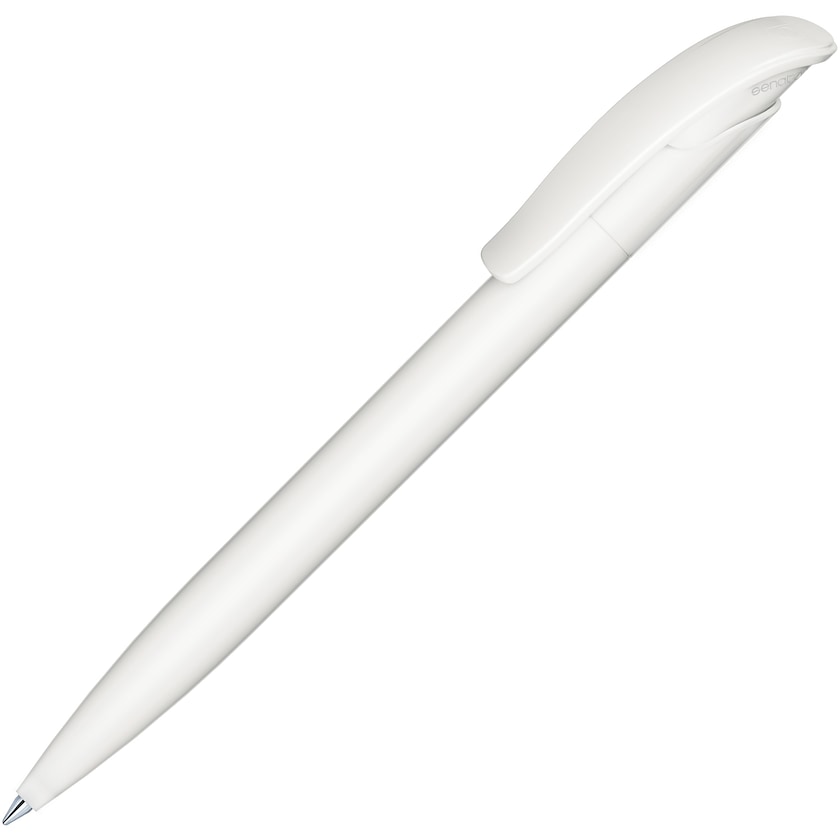 Elegant designad penna av återvunnen plast. Pennan har en behagligt matt yta. Bläckpatronen är av typen "Magic Flow" och klarar att skriva i minst 5000 meter. Välj mellan blått eller svart bläck. På pennkroppen finns texten "Recycled Material" förtryckt.
