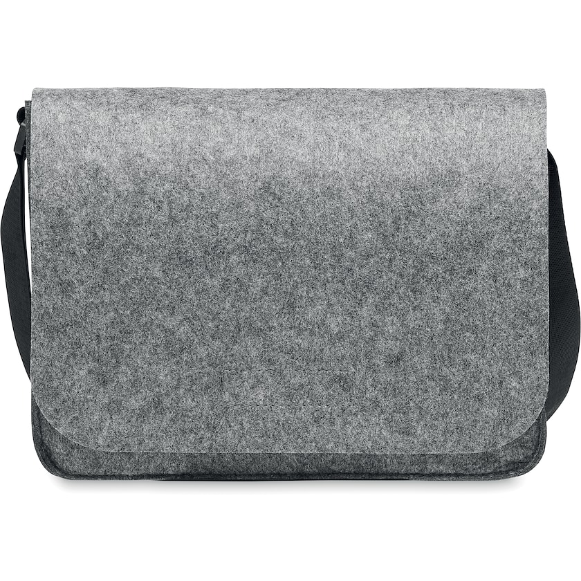 Miljövänlig axelremsväska av kraftigt filttyg. Filttyget är tillverkat av det rPET, dvs återvunna PET-flaskor. En snygg axelremsväska av hög kvalitet.