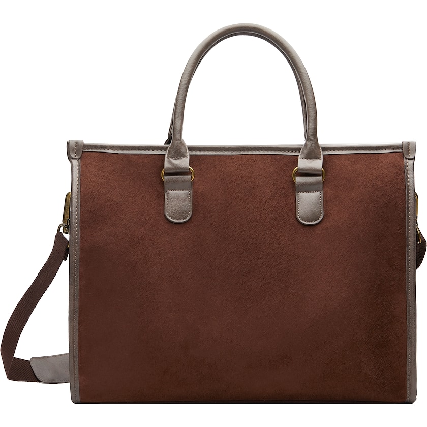 Exklusiv datorväska av veganskt läder. Invändigt finns ett vadderat fack för en 15 tums laptop. Väskan har fina metalldetaljer i mässingsfinish. Axelremmen är reglerbar.
