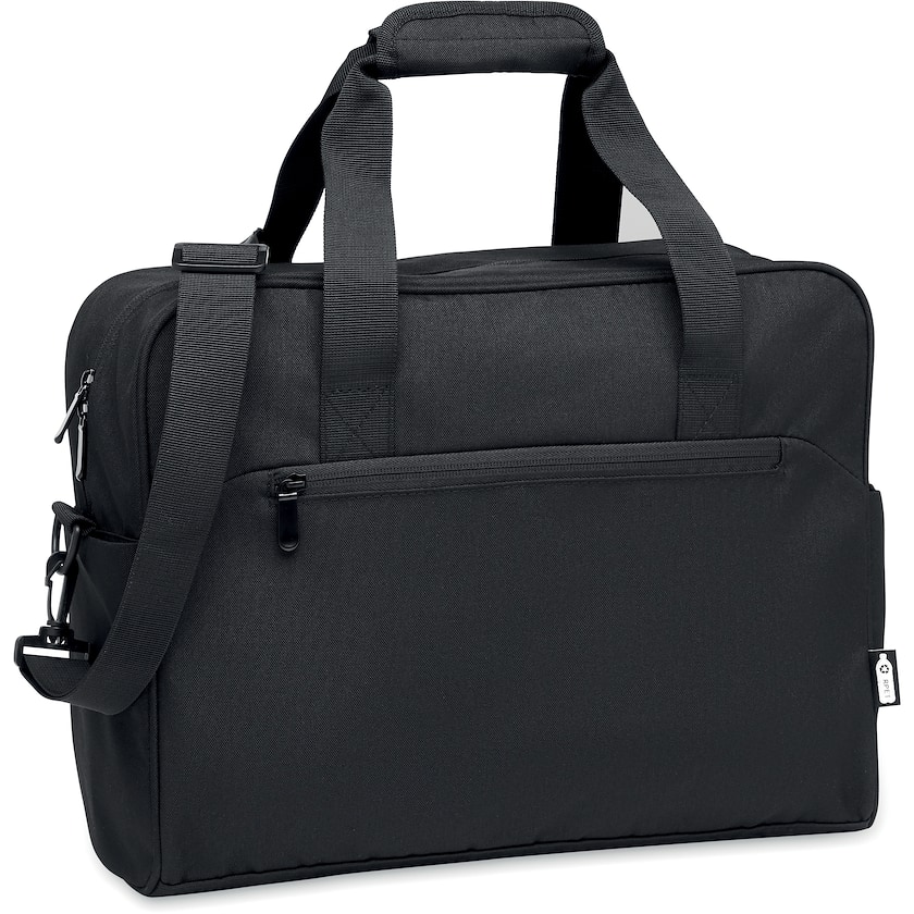 Miljövänlig datorväska för en 15 tums laptop. Framtill finns en dragkedjeförsedd ficka och på baksidan finns ett fäste för trolley. Tillverkad av miljövänlig rPET.