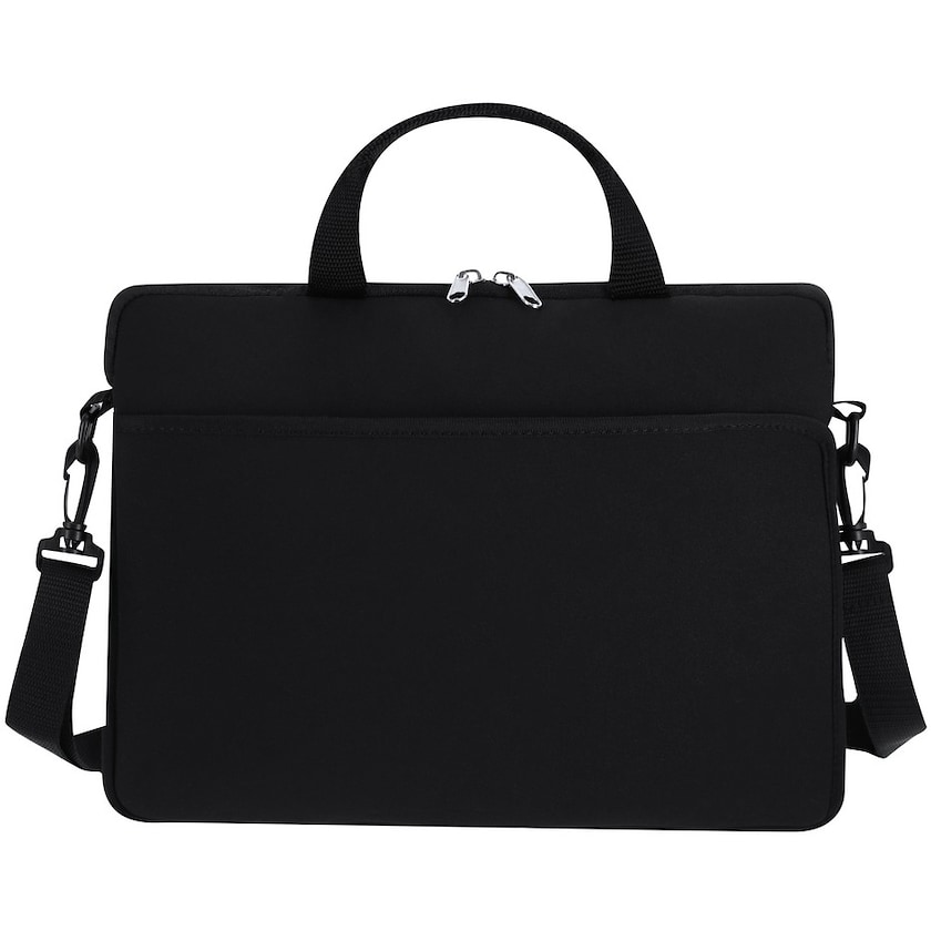 Datorväska av soft shell. Invändigt finns ett fack för en 14 tums laptop. Axelremmen är avtagbar. På baksidan finns ett fäste för trolley. Materialet ger innehållet utmärkt stötdämpning.