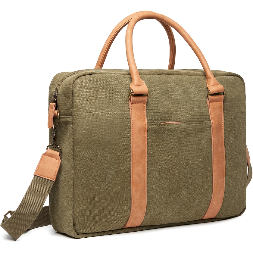 Datorväska av vacker återvunnen bomullcanvas. Invändigt finns ett vadderat fack för en 16 tums laptop. Datorväskan är till 45% tillverkad av återvunna material.