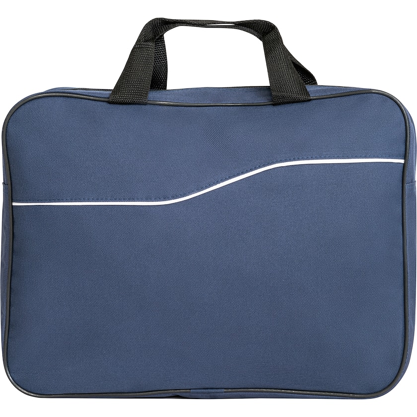 Dokumentväska med korta handtag till ett attraktivt pris. Väskan har ett vitt dekorband på framsidan.