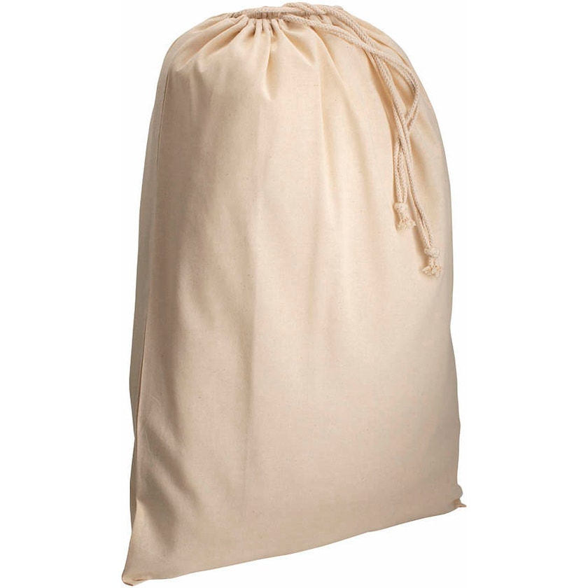 Superstor bomullspåse av 120 grams bomullstyg. Aruba är naturfärgad och har snörning upptill. Ett bra val för dig som söker en riktigt stor bomullspåse.