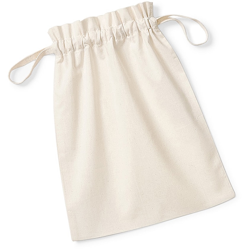 Miljövänlig bomullspåse av 115 grams ekologiskt bomullstyg. Påsen har dubbel snörning för förbättrad förslutning. Volymen är 0,25 liter. Pga den lilla storleken är tryck på påsen inte möjligt.