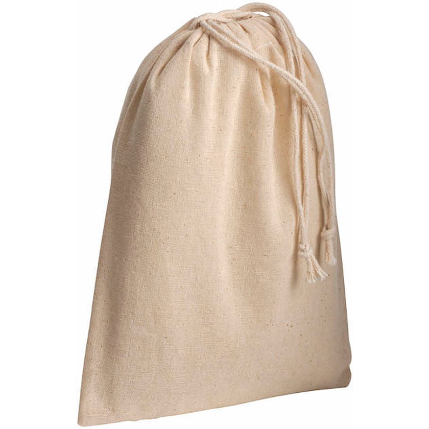 Liten bomullspåse tillverkad av ett 120 grams bomullstyg. Galicia är vackert naturfärgad och är försedd med snören upptill.