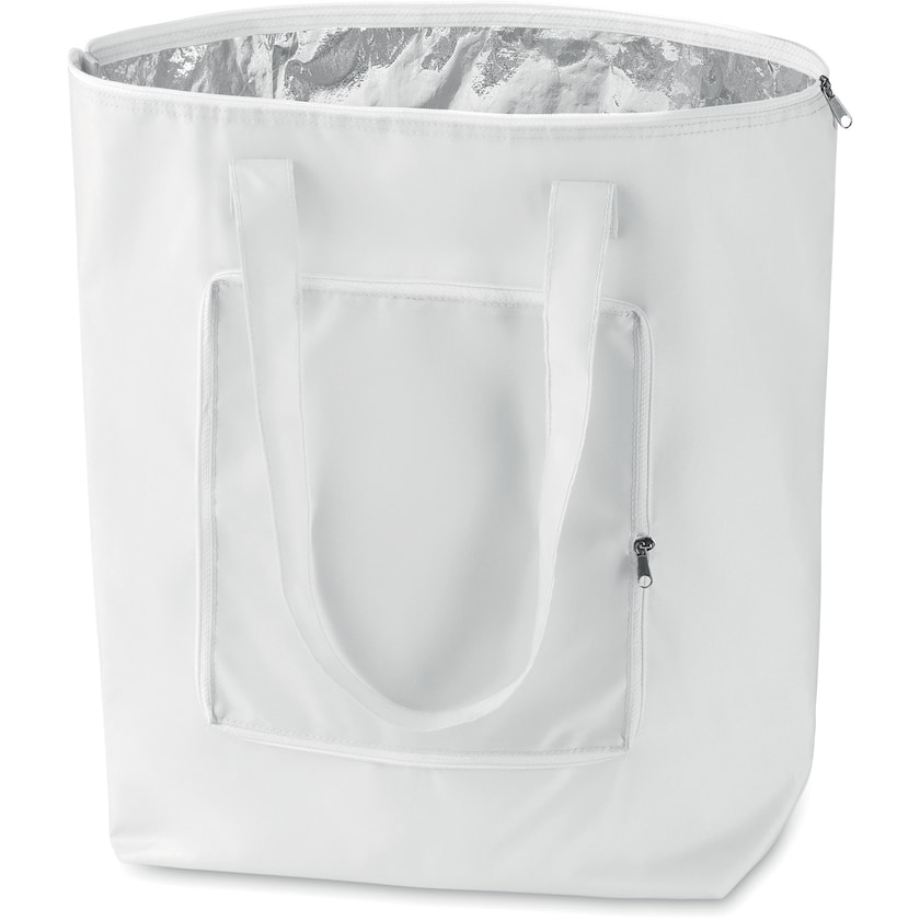 Ihopfällbar kylväska med insida täckt av aluminiumfolie.