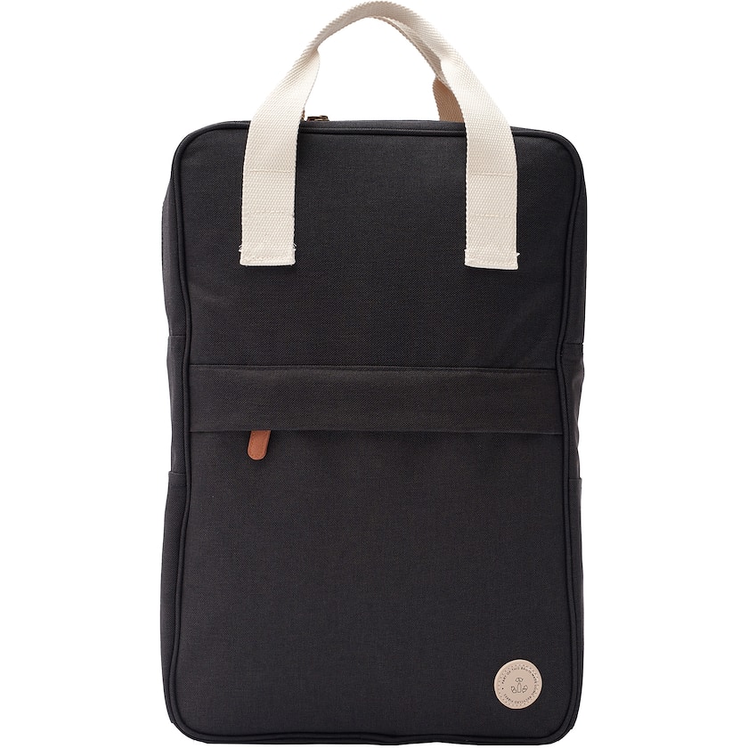 Modern kylväska i ryggsäcksmodell. Kylväskans tyg är tillverkat av rPET, dvs återvunna PET-flaskor. Detaljerna är gjorda av konstläder. Utöver huvudfacket finns flera mindre förvaringsfickor.