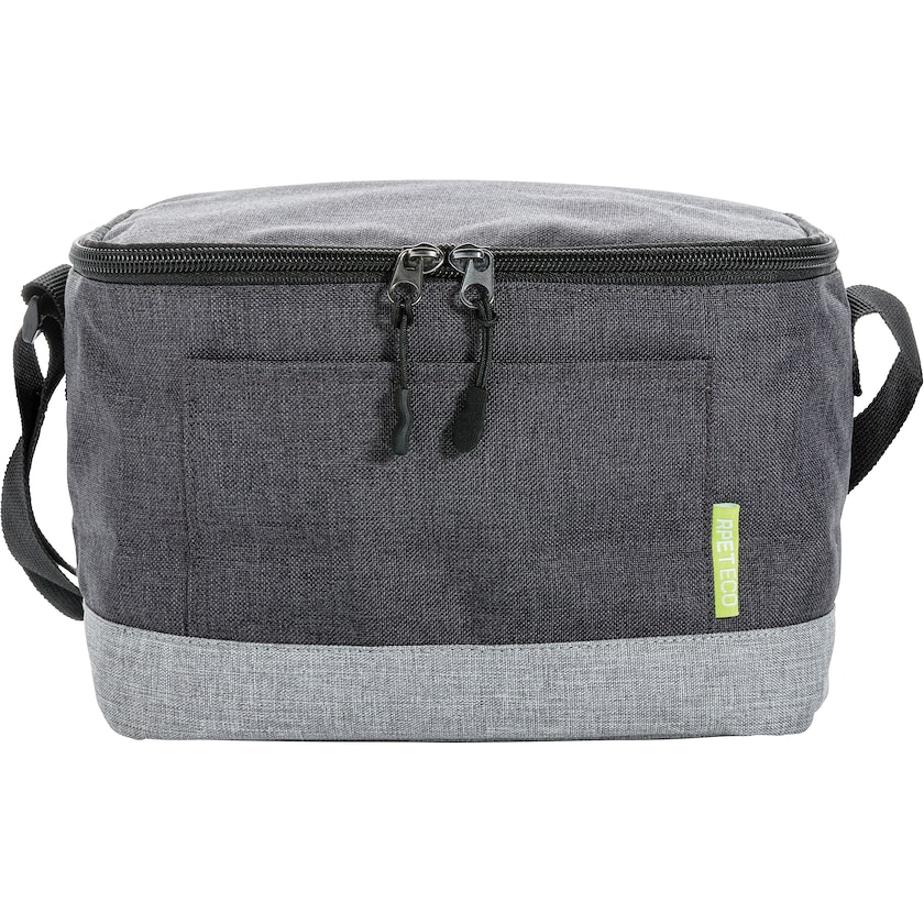 Miljövänlig kylväska. Kylväskan är tillverkad av rPET, dvs återvunna PET-flaskor och är därmed ett bra miljöval. Väskan rymmer sex burkar och framtill finns en extra förvaringsficka. Registrerad design®.