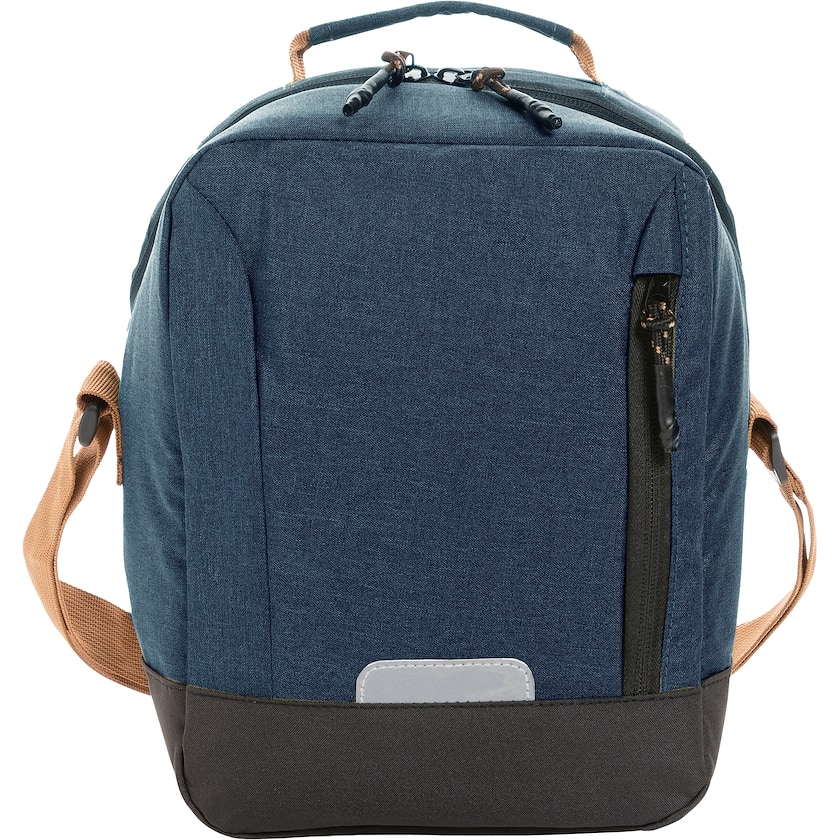 Miljövänlig kylväska av återvunnet material. Kylväskan har en perfekt storlek för att rymma lunch för två personer. Axelremmen är reglerbar. Framtill finns en liten dragkedjeförsedd förvaringficka.