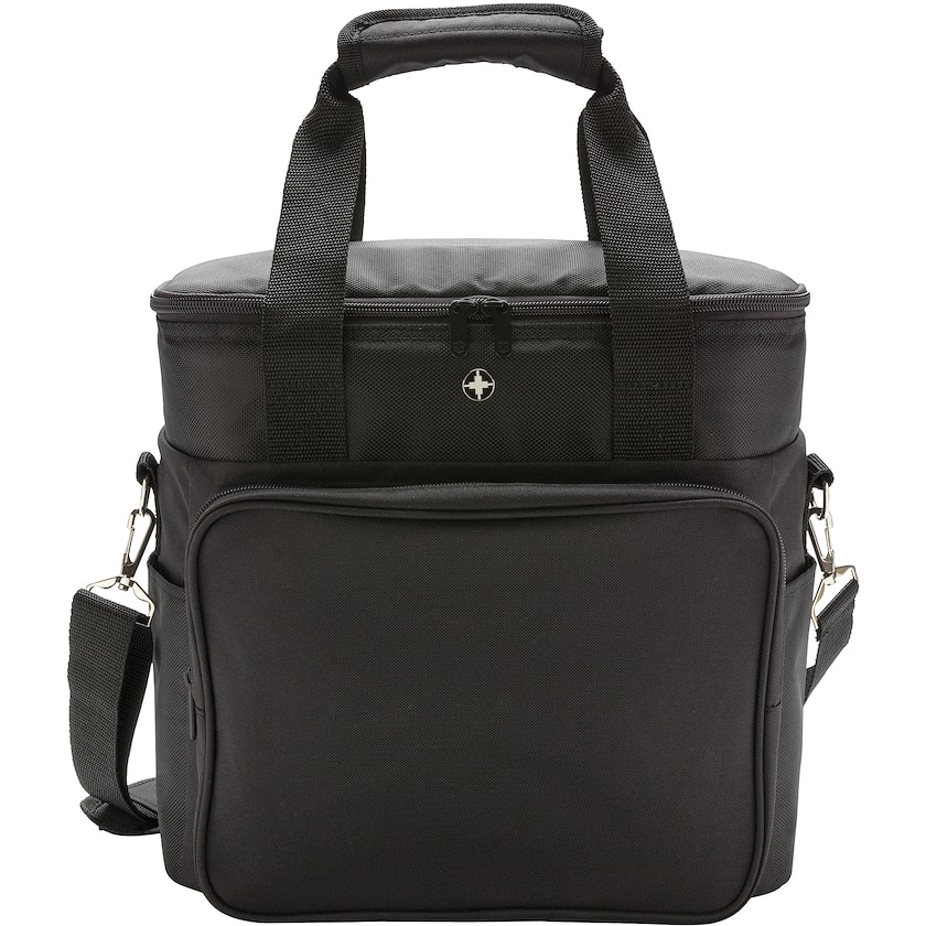 Exklusiv kylväska med tryck från Swiss Peak. Kylväskan har ett extra stort huvudfack med plats för upp till 20 st 33 cl burkar. Handtagen är förstärkta och axelremmen är justerbar och avtagbar.
