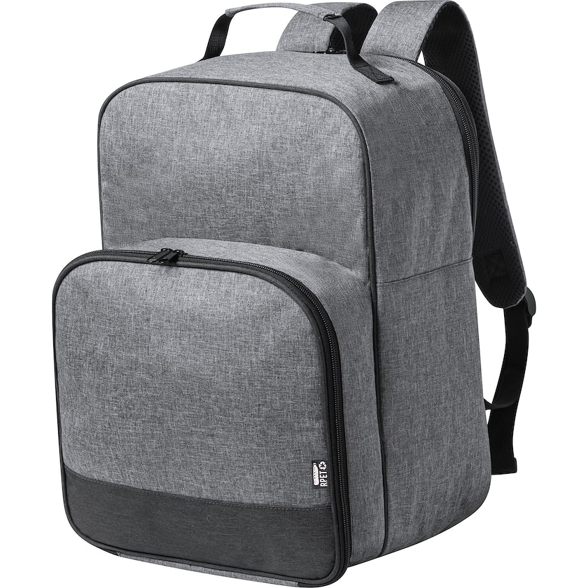 Unik kylväska med picknickset. Kylväskan är tillverkad av rPET, dvs återvunna PET-flaskor. Picknicksetet består av två glas, två knivar, två gafflar, två skedar, två tallrikar och två servetter.