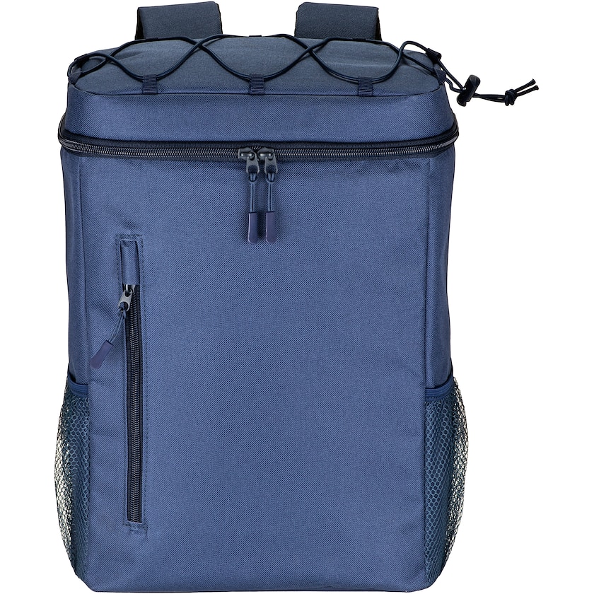 Rymlig kylryggsäck till ett attraktivt pris. Framtill finns en dragkedjeförsedd ficka och på sidorna finns nätfickor. Baksida och axelremmar är vadderade och andas. På axelremmarna finns reflexband. Endast 1-färgstryck är möjligt.
