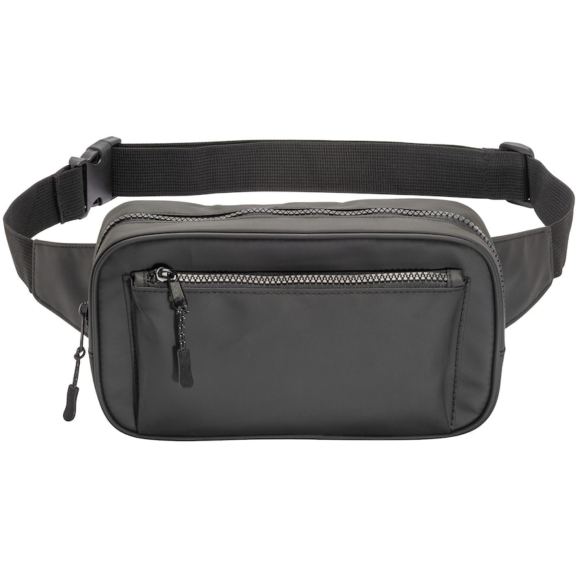 Midjeväska av vattentåligt tyg med eget tryck. Väskan har två förvaringsutrymmen som båda är utrustade med dragkedja. Tack vare det vattentåliga tyget är innehållet skyddat vid t ex kraftiga skyfall. Endast 1-färgstryck är möjligt.