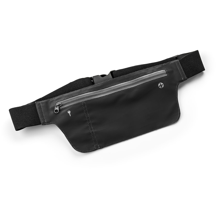 Sportig midjeväska med tryck. Custer har en dragkedjeförsedd förvaringsficka och uttag för hörlurar.
