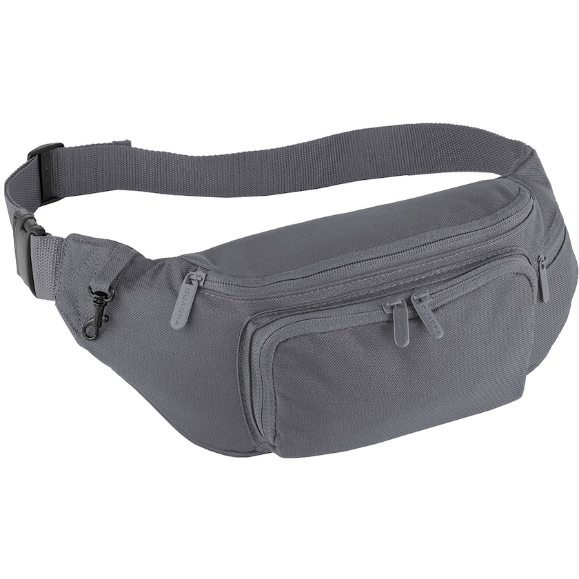 Högkvalitativ midjeväska med reglerbar midjerem. Väskan har ett flertal dragkedjeförsedda fickor och rymmer 2 liter.