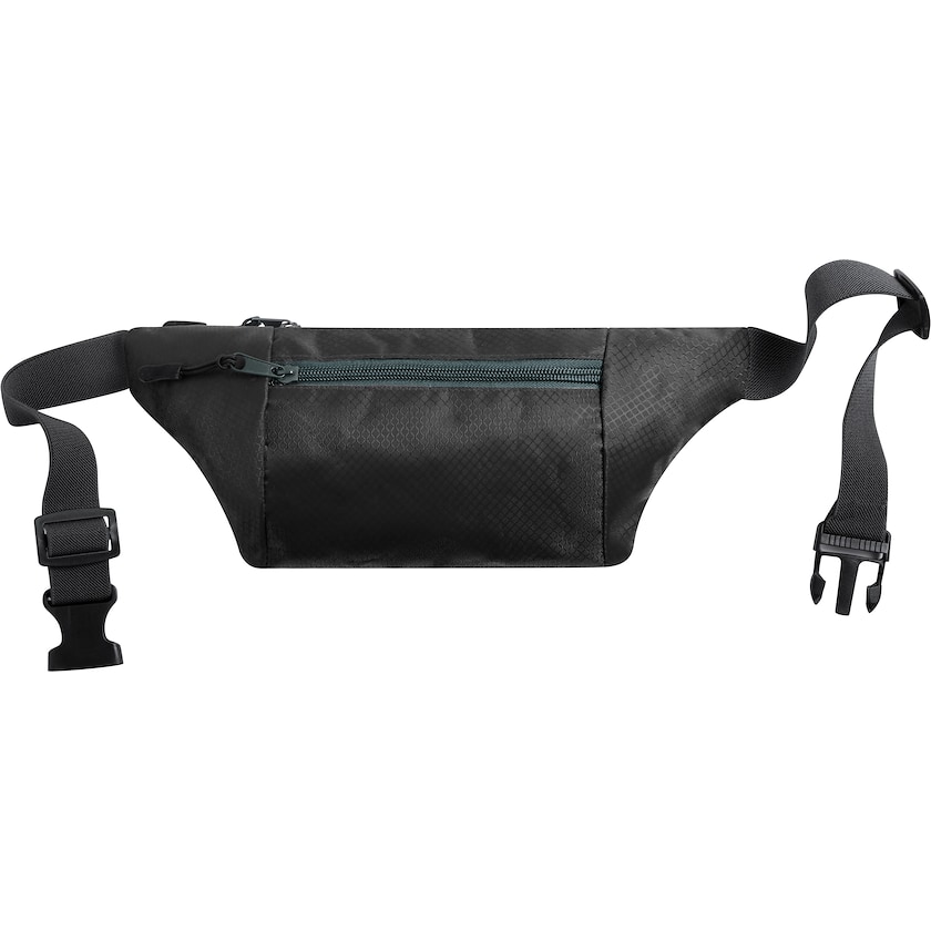Midjeväska av tåligt tyg av ripstop. Väskan har två dragkedjeförsedda fickor.