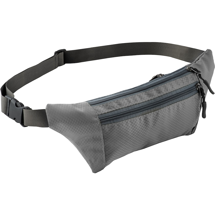 Högkvalitativ midjeväska med flera förvaringsutrymmen. Framtill finns två dragkedjeförsedda förvaringsfickor och på baksidan finns en dragkedjeförsedd förvaringsficka. Midjebandet är justerbart.