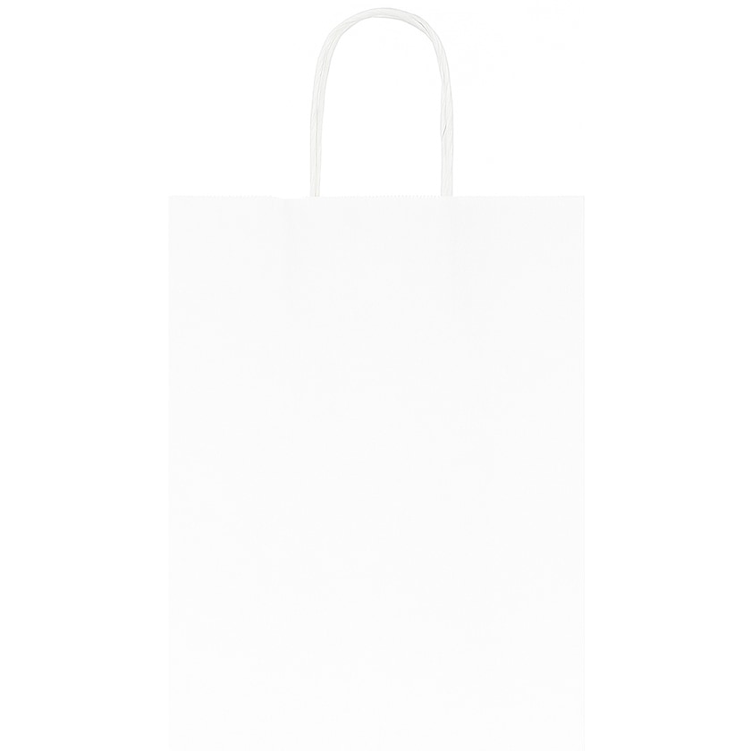 Digitaltryckt vit papperskasse. Handtagen är tvinnade och förstärkta. Papperskassen klarar maximalt 6 kg vikt. Eftersom kassen digitaltrycks är leveranstiden kort.