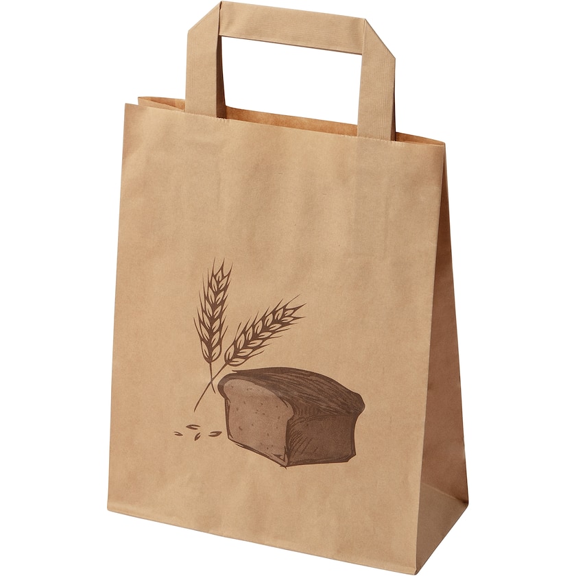Papperskasse med tryck med platta handtag. Välj mellan brunt och vitt papper. Tryckpriset avser tryck på en av sidorna.