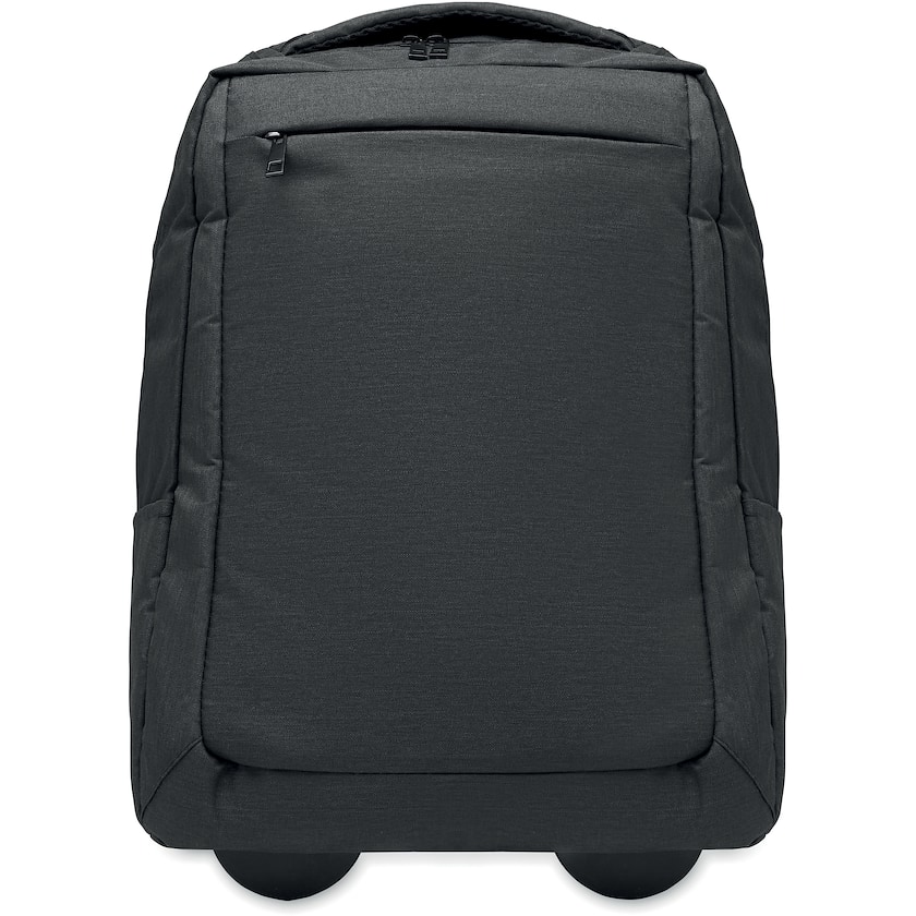 Trolleyryggsäck av återvunnet material. Invändigt finns det ett vadderat fack för en 15 tums laptop. Framtill finns en dragkedjeförsedd ficka och på sidorna två mindre fickor.