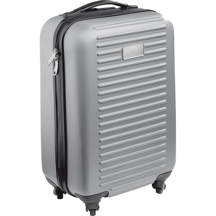 Trolley i kompakt format som finns i flera olika färger. Trolleyn har fyra hjul och dubbla dragkedjor. Märkning sker med tryck på metallplattan framtill. Trycket täcks av ett skyddande lager epoxy vilket ger trycket ett påkostat intryck.