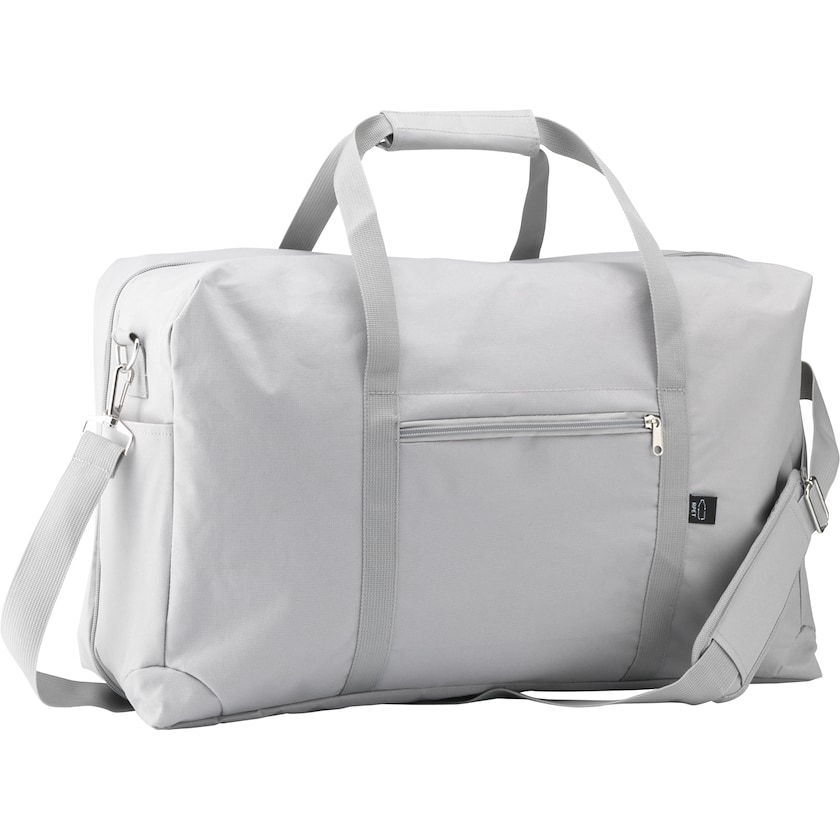 Påkostad weekendbag av miljövänligt material. Draper är tillverkad av återvunna PET-flaskor. Väskan kan öppnas helt vilket underlättar packning. Utöver huvudfacket finns även två separata dragkedjeförsedda förvaringsutrymmen. Invändigt finns ett separat fack för säker transport av en 13 tums laptop. Axelremmen är avtagbar. Endast 1-färgstryck är möjligt.