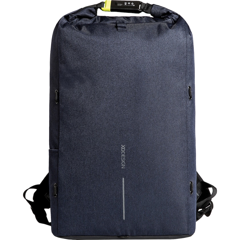 Unik laptopryggsäck med anti-ficktjuv-funktion. Ryggsäcken kan stängas genom att huvudfacket rullas upp och låses med ett stålförstärkt kombinationslås. Låset kan också användas för att låsa fast ryggsäcken vid ett annat föremål. På insidan samt i axelremmen finns dolda RFID-skyddade förvaringsfack. Invändigt finns ett vadderat fack som rymmer de flesta laptops upp till 15,5 tum samt ett vadderat fack för surfplattor upp till 12,9 tum. Registrerad design®.